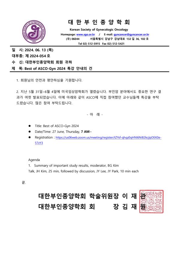2024-054(20240613) 대한부인종양학회 Best of ASCO Gyn 2024 특강 참여 안내의 건 조회수 : 105 게시일 : 2024-11-18 2024-054(20240613) 대한부인종양학회 Best of ASCO Gyn 2024 특강 참여 안내의 건.pdf (다운로드 : 2회) 목록